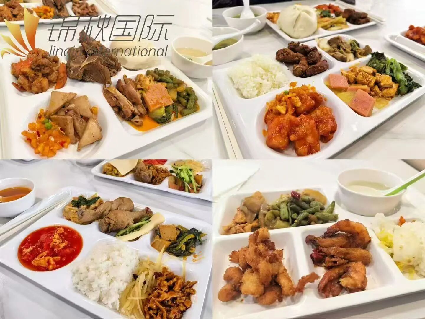每天的正午时分的锦秋国际沈阳校区食堂,总能飘出令人安心的烟火气。这里没有花哨的摆盘,却藏着最扎实的“家常哲学”——每天固定的4 荤 4 素搭配,配上热气腾腾的米饭、蒸饺、凉皮、馄炖等主食,构成了学生们能量补给的“基础款”保障。