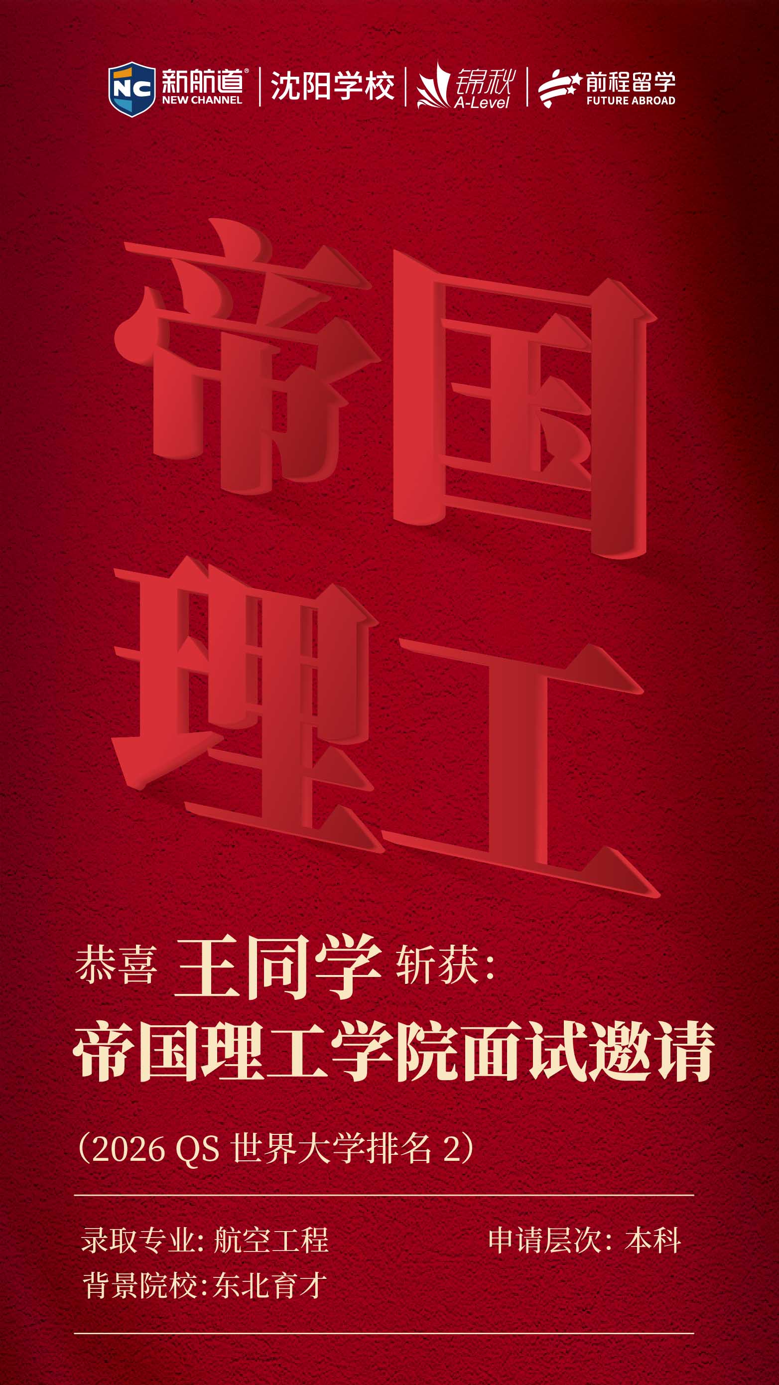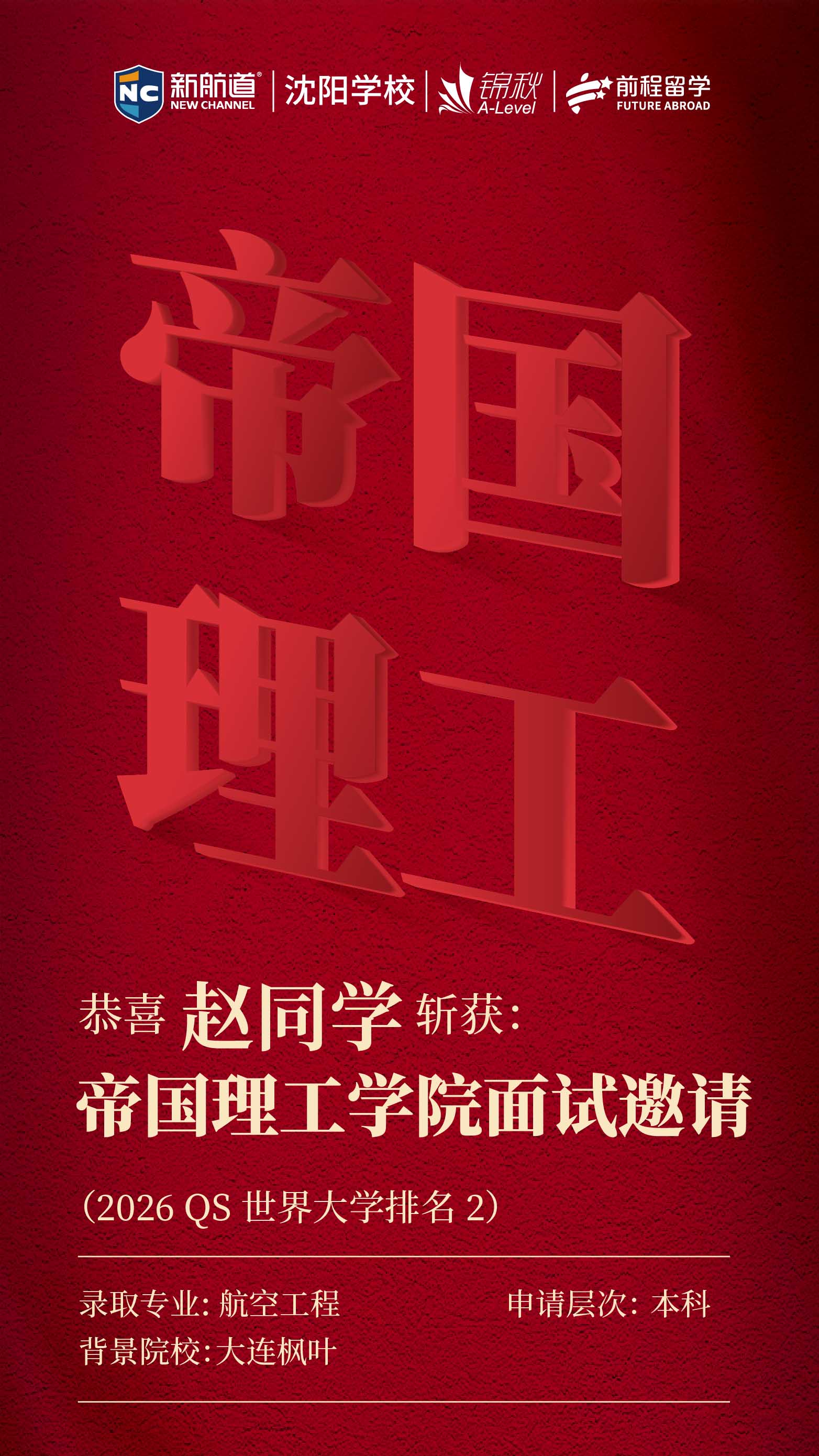 恭喜小赵和小王迎来帝国理工学院面邀!