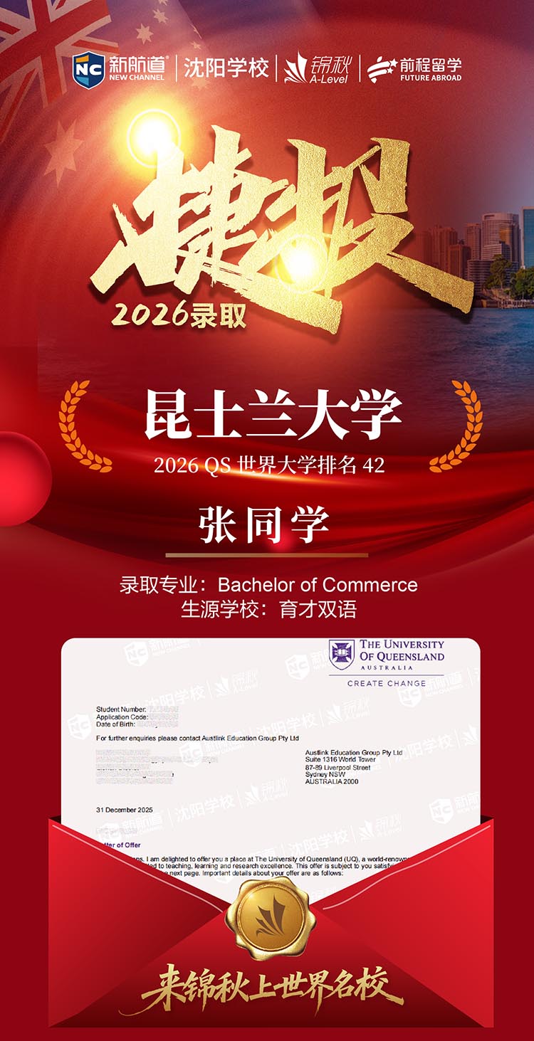 张同学 昆士兰大学 有条件录取